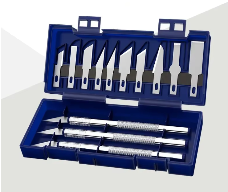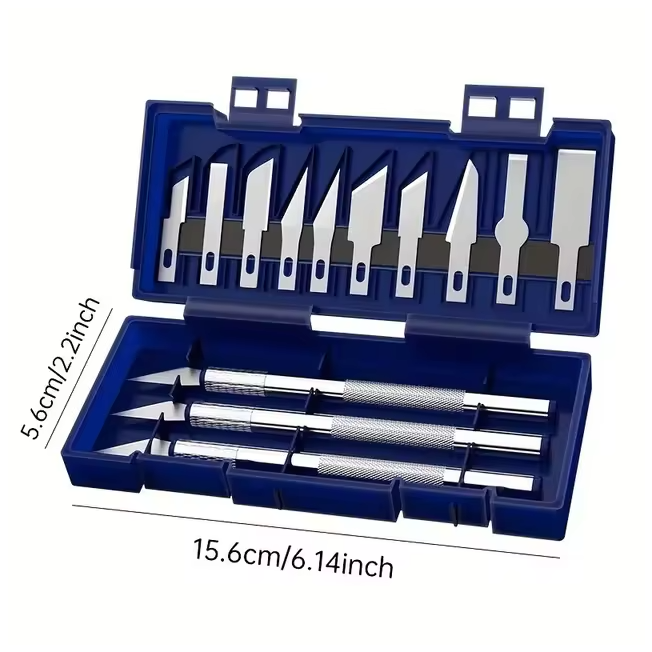 Ensemble de 13 couteaux de précision livré avec 3 couteaux d'artisanat, 10 lames dont une lame à buriner, une lame à bord de pochoir, une lame à pointe fine et plus encore, pour pouvoir gérer des projets détaillés comme un jeu d'enfant impliquant une coupe de précision, une coupe, un burinage, un ébavurage, un marquage, un taillage, une sculpture, un grattage, etc.