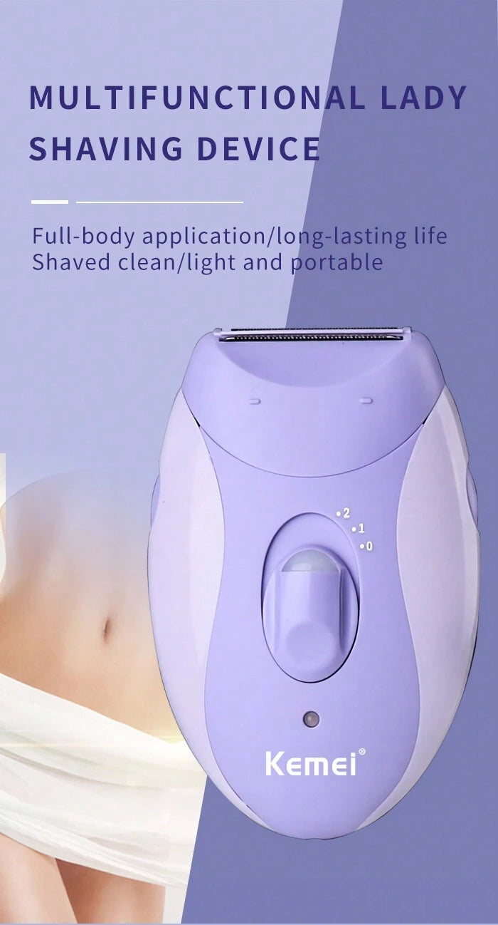 آلة حلاقة النساء الشحرورة لإزالة الشعر من الوجه والجسم والبيكيني، آلة حلاقة كهربائية للنساء قابلة للشحن Kemei Km-6037