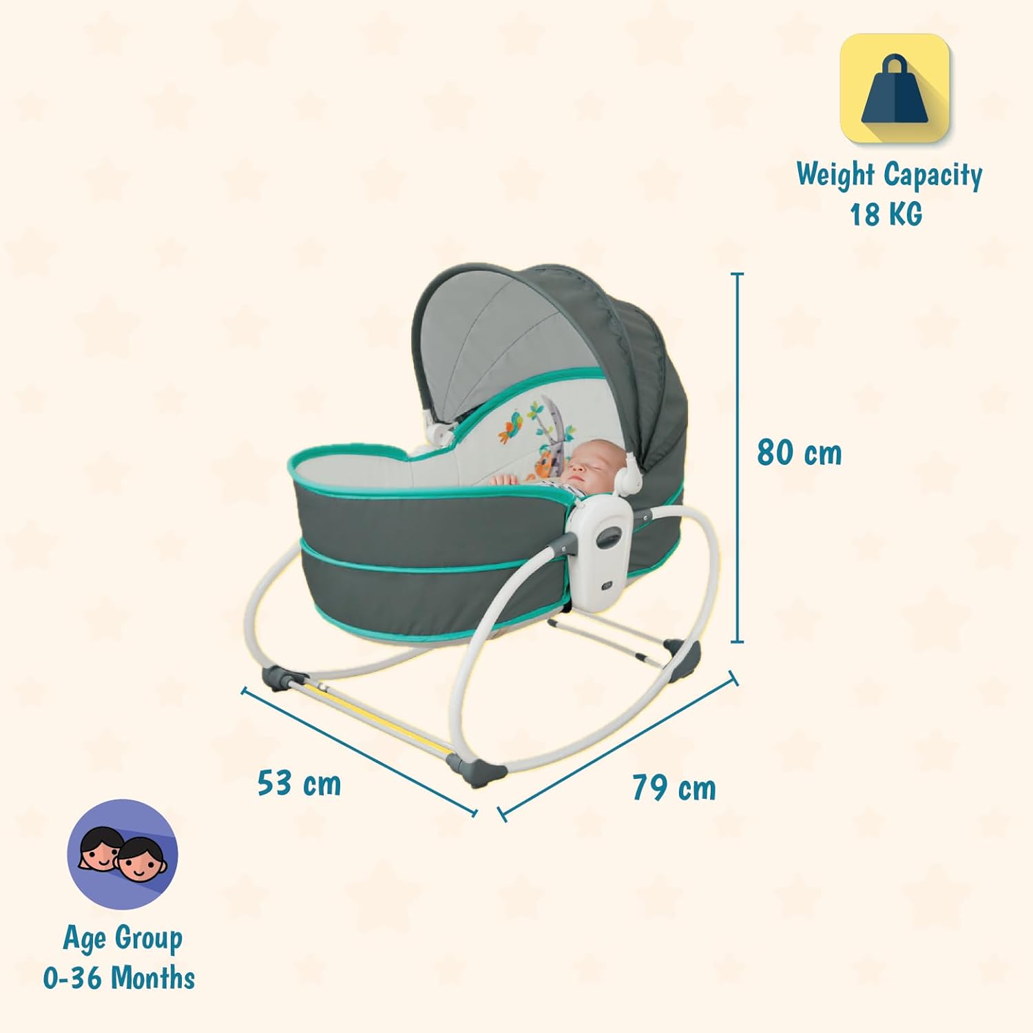 - MODE BERCEAU À BASCULE (POIDS MAXIMUM 9 KG) : Ce mode apaise votre bébé et l'aide à s'endormir grâce à de douces mélodies et de légères vibrations, créant ainsi un environnement calme qui favorise la détente et un endormissement paisible.